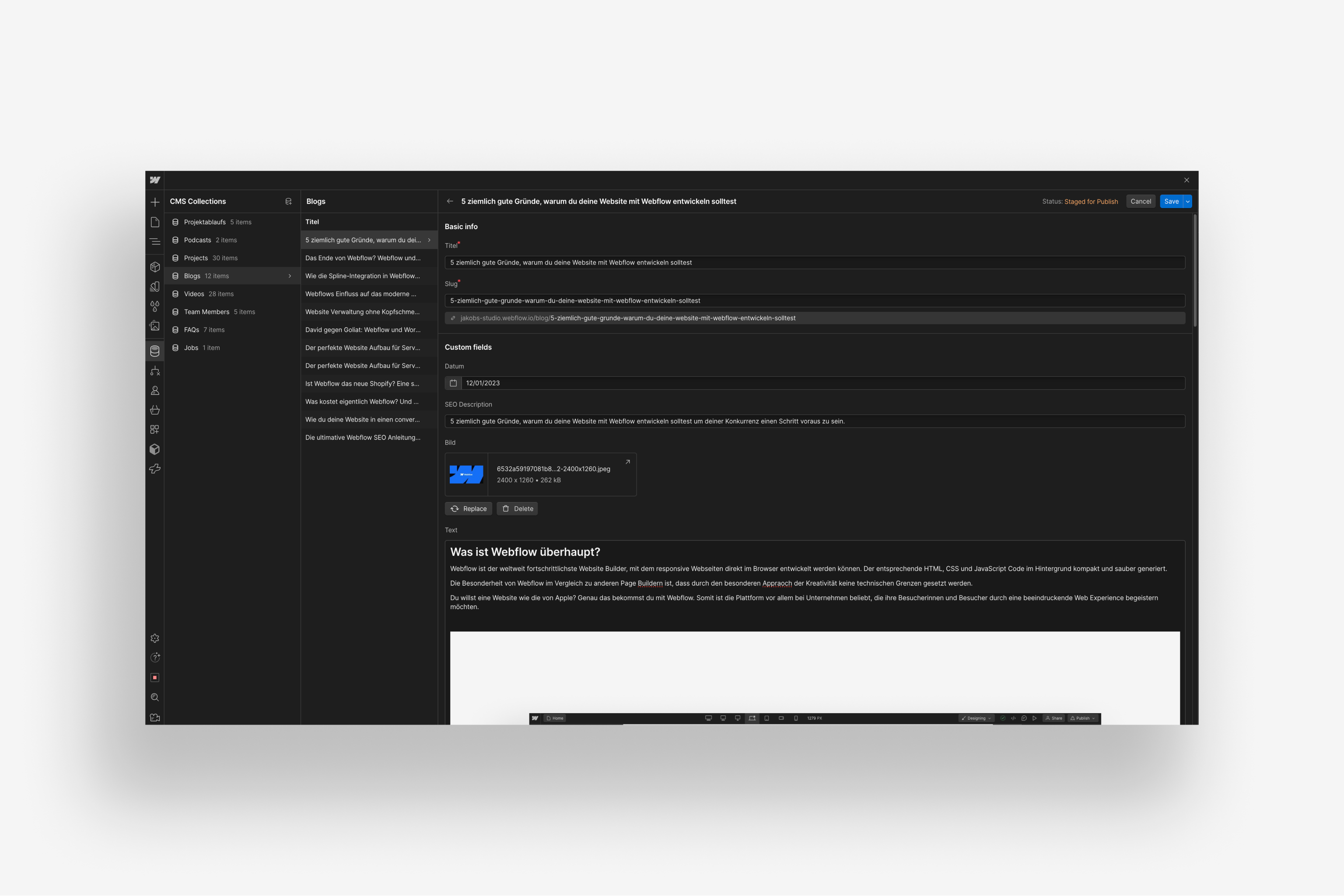 Auch viele meiner Kunden wissen das Webflow CMS extrem zu schätzen. Content-Pflege wird damit zum stressfreien Kinderspiel. Man kann nichts kaputtmachen oder zerschießen. Gerade wenn man zuvor mit WordPress unterwegs war, läuft man mit dem Webflow CMS vom Regen ins warme Wohnzimmer. Wer auch in diesem Bereich mehr wissen möchte, kann sich unseren Artikel zum Thema Webflow Editor durchlesen.